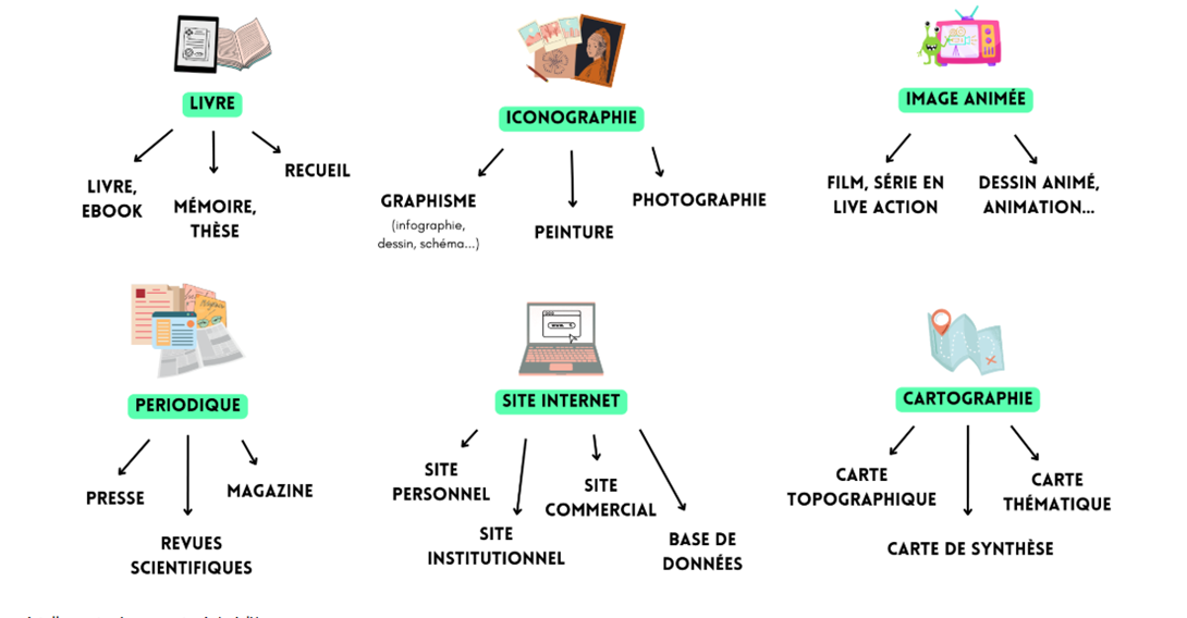 On distingue 6 grands types de documents :