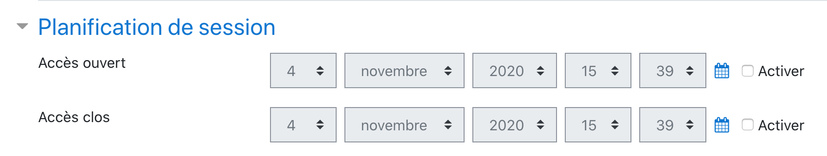 Bien entendu, n'activez pas la planification de sessions si vous souhaitez utiliser le même salon BBB pour plusieurs sessions de visioconférence.