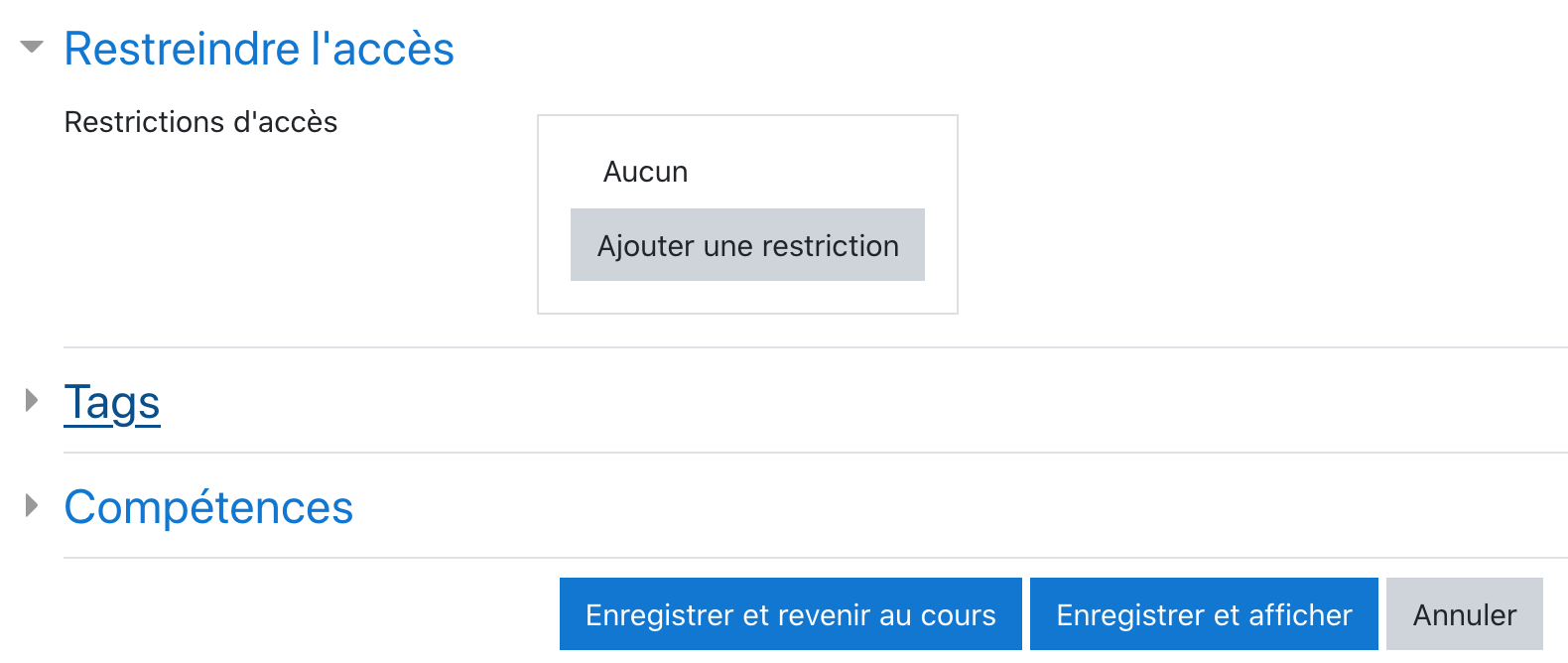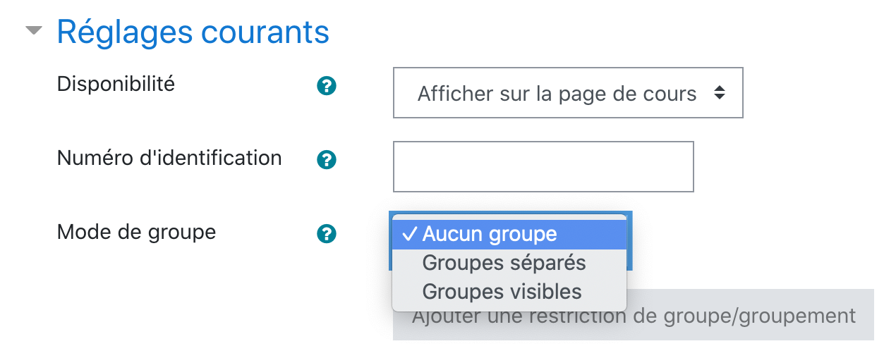 Disponibilité : Vous pouvez cacher l'activité aux utilisateurs de votre cours.